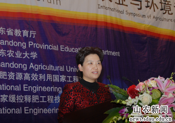 校党委常委、副校长张宪省教授主持开幕式。山东省教育厅发来贺信对专题论坛的召开表示祝贺。校党委书记邢善萍在开幕式上致辞,简要介绍山东农大的办学情况,对与会专家表示欢迎。她在致辞中指出,本次论坛的主题――农业与环境,是当今世界的热点问题之一,关系科学发展,关系国计民生,关系子孙后代。中外专家学者齐聚泰山脚下,共同研讨这一专题具有重要的现实意义和长远意义。论坛在我校举行,充分体现了上级领导对我校的关心厚爱,体现了专家学者们对我校农业与环境领域研究的肯定和鼓励,也为我校教育和科技工作者提供了学习提高的平台。希望与会专家关心支持学校的发展,并对学校的建设和发展提出宝贵意见和建议。学校将以此为契机,大力加强人才队伍和科研平台建设,不断推进农业与环境研究的进步和创新,努力为生态文明建设和农业现代化建设做出新的贡献。