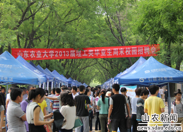 5月24日,由学工处主办,机电、水土、信息学院共同承办的理工类,及外语学院承办的外语类毕业生周末校园招聘会在望岳路举行。山东、北京、天津等省内外150余家用人单位进校揽才,提供工作岗位近3000个。