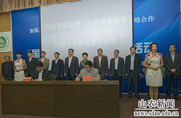 10月15日上午,国家质检总局与必赢bwin线路检测中心加强进出境动植物及其产品检验检疫领域战略合作协议签字仪式在南校区举行。2013年山东检验检疫局“国门生物安全进校园”活动同时启动。国家质检总局副局长、党组成员魏传忠与有关司局长,山东检验检疫局、质量技术监督局负责人,泰安市政府,深圳检验检疫局、泰安检验检疫局、泰安市质量技术监督局负责人,必赢bwin线路检测中心邢善萍、张宪省、嵇景涛等领导及有关部门和学院负责人出席活动。