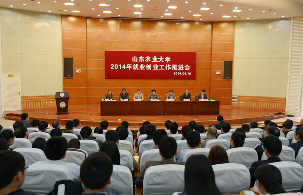4月10日,学校召开2014年就业创业工作推进会,总结2013年就业创业工作,隆重表彰招生就业、创新创业工作先进集体和先进个人,部署2014年就业创业工作。校领导邢善萍、孙永华、张宪省、车先礼及有关部门负责人出席会议,各学院、各部门负责人、全体辅导员和师生代表参加会议。