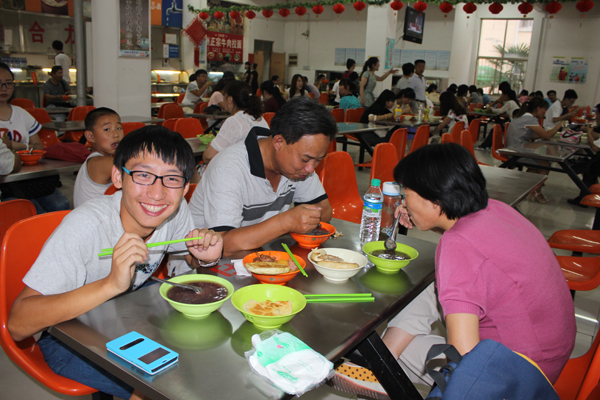 品尝学校食堂可口饭菜