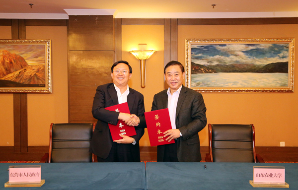 根据协议,山东农大将与东营市联合共建必赢bwin线路检测中心“黄河三角洲现代农业试验示范基地”,围绕黄河三角洲地区现代农业发展的需要,政产学研用和农科教紧密结合,积极推进现代农业技术协同创新、盐碱地长期定位研究、农业大数据研究、人才培养、技术服务和科技成果转化推广工作,推动黄河三角洲高效生态经济区现代农业向绿色、生态及可持续方向发展。