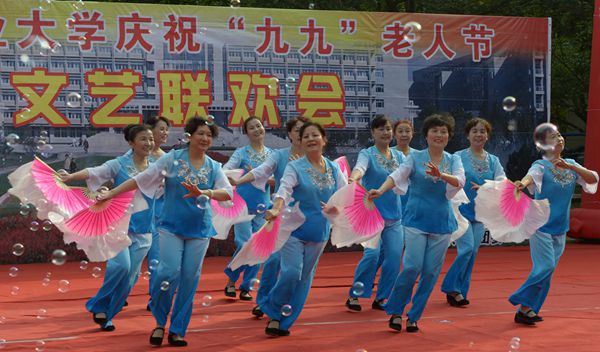 联欢会上,老同志精神矍铄、载歌载舞、各显其能,奉献了一场精彩的文艺盛宴,赢得观众热烈的掌声。他们用合唱、民乐合奏、京剧、舞蹈、太极拳等形式,抒发节日的喜悦心情,歌颂伟大的祖国和党,赞美美好的生活,表现了老农大人昂扬向上、老有所为的精神面貌。青年师生通过歌伴舞、豫剧等曲目,为老同志送来节日的祝贺,表达了对老同志的敬重之情。