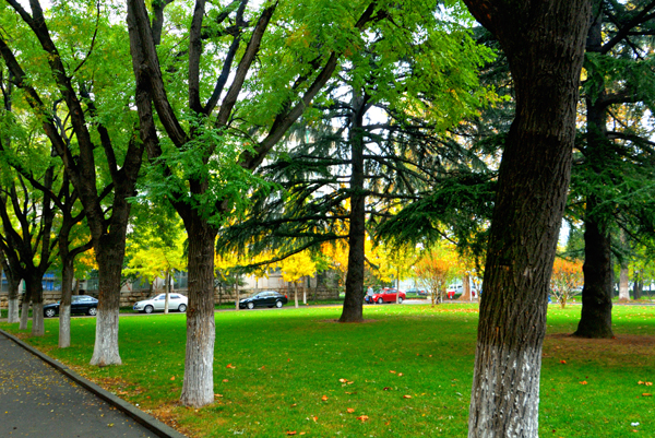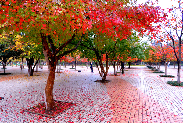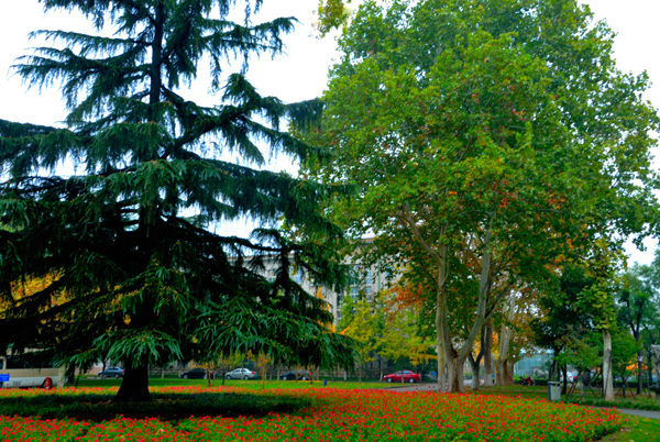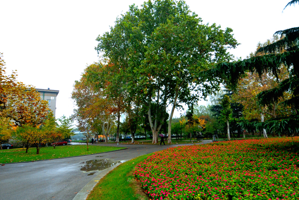 一场淅淅沥沥的秋雨,滋润着农大校园。高大挺拔的树木,色彩斑斓的树叶,浓浓密密的花草,把校园装点得更加美丽。漫步校园,一步一景,美在眼前,爱在心里。