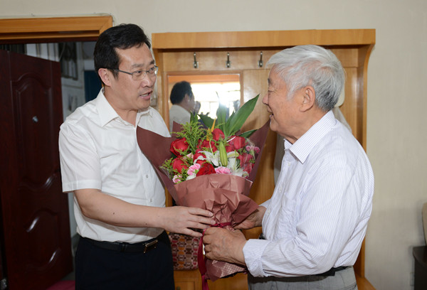 5月26日,党委书记徐剑波登门看望学校老领导施培、李毓椿、邹琦、冯承明,询问他们的健康、家庭、生活情况,请老领导对工作多指导,对学校发展多提建议,并祝他们身心愉快,幸福安康。