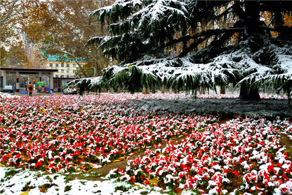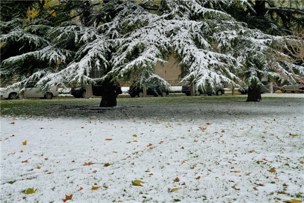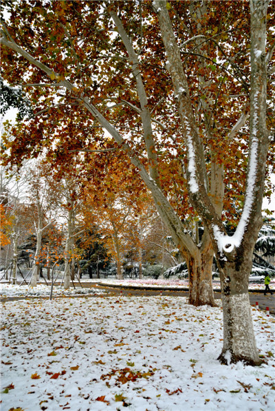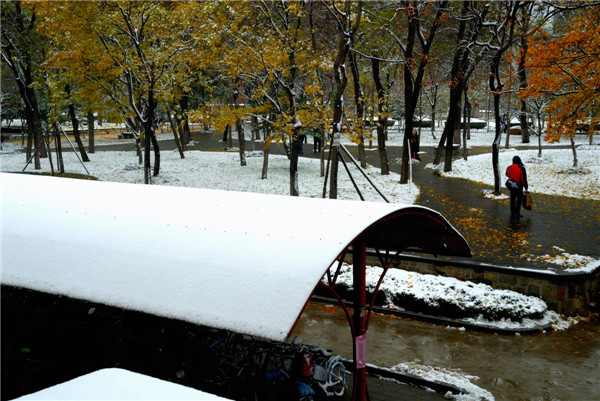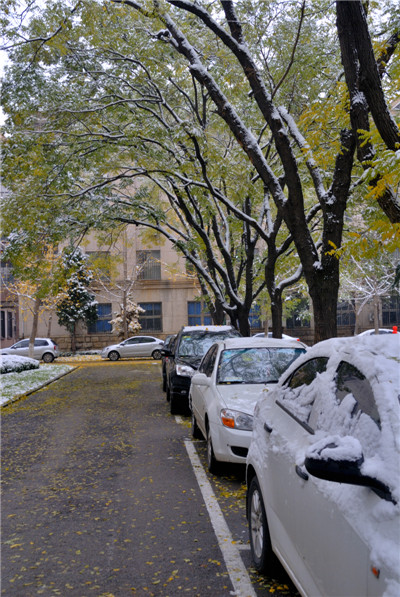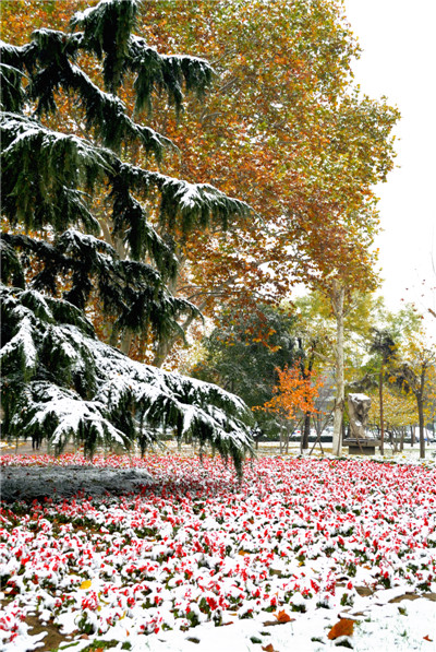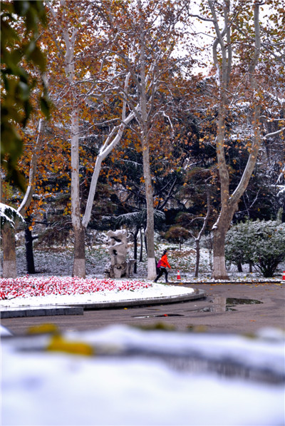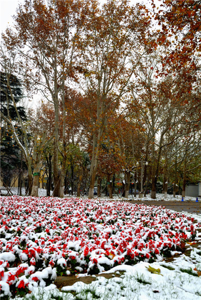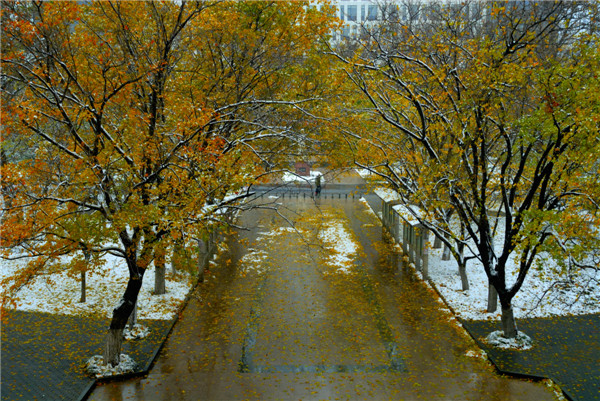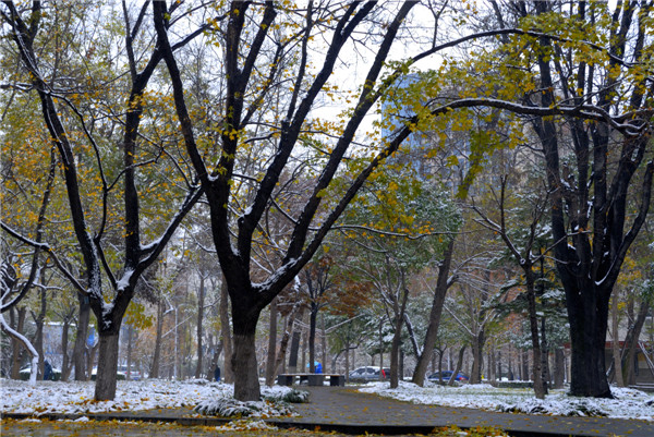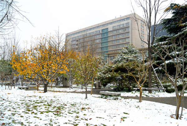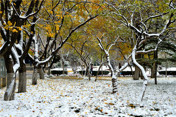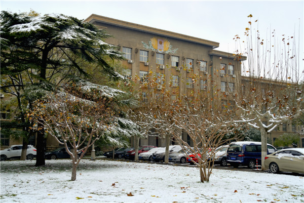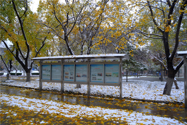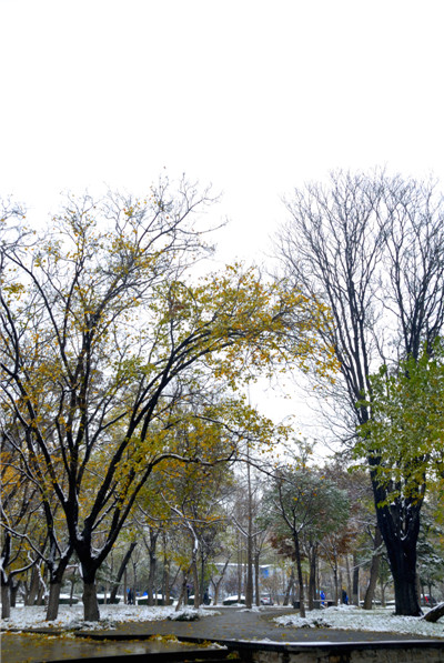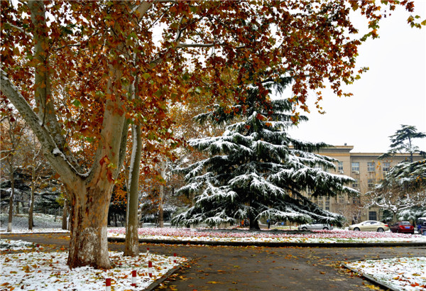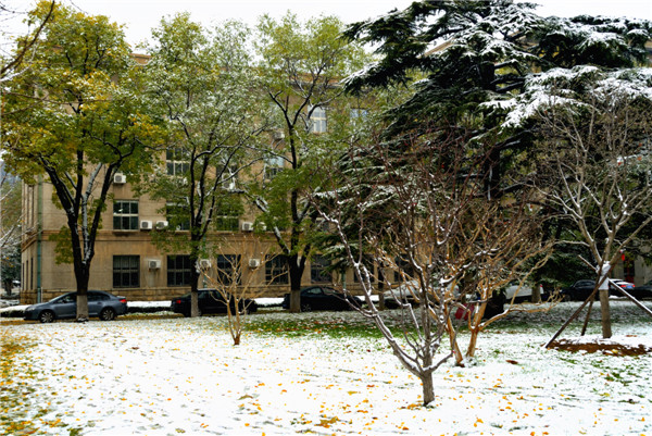 寒气袭人,初雪不期而至,银装素裹,景致纯净素雅。昨日校园秋韵,今朝雪花飘飘,两番天地,别样神韵,最爱必赢bwin线路检测中心。