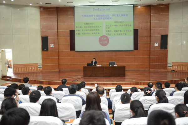 唐波为化学学院、生科学院教师和部分研究生、本科生作题为《生命分析中的细胞与活体成像》的学术报告。报告中,唐波介绍了高分辨荧光成像技术在细胞及活体成像中的应用,总结提炼了该应用领域存在的动态原位、高灵敏度、同时检测、活体高分辨等四个需进一步研究的问题,提出了相应的解决策略。唐波还逐一回答了师生提出的问题,并就农业高校的化学学科跨界交叉、利用化学手段开展生物学研究等给出意见建议。报告为师生呈现了一场具有国际先进水平的学术盛宴,赢得了大家的热烈反响。