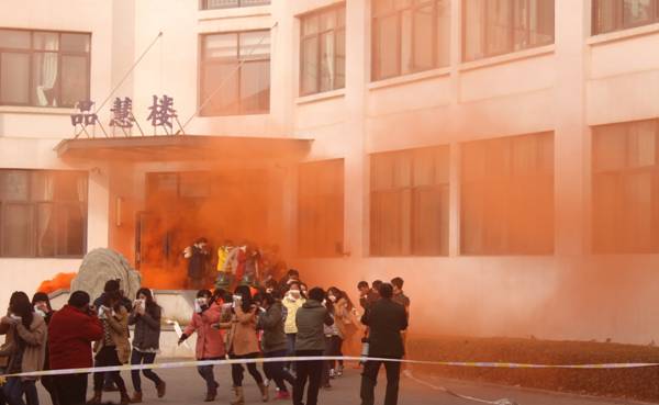 演练分别针对学校人员密集场所和高层公寓发生火灾的情形展开,师生们就报警、疏散、逃生、救助等相关环节作了演练。泰安消防支队专家对演练活动进行点评,肯定了此次演练的积极意义并现场讲解消防安全知识,演示灭火器的正确使用。专家还结合演练内容强调了火灾发生时要遵循的几项原则:远离火源、及时撤离、勿贪财物。学生们在现场燃起的火堆旁亲身体验了灭火器的实际操作。