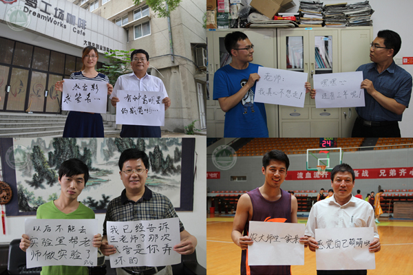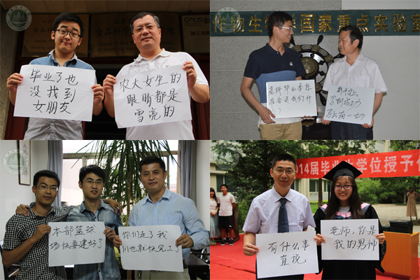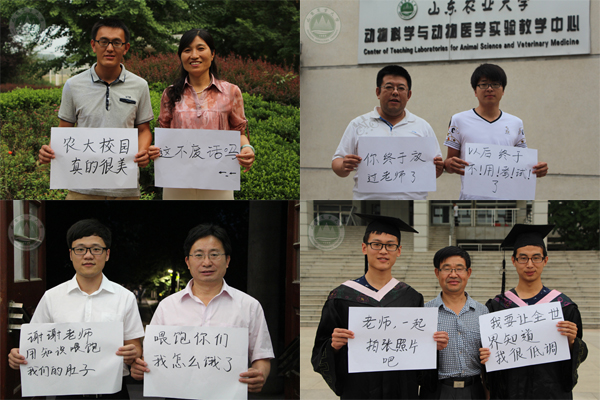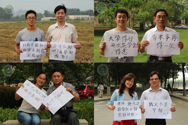 系列照片中,来自16个学院的党委副书记与毕业生用答题板诉说心语的方式来表达深情厚谊,短短几句话,浓缩了师生之间的趣事,表达了真挚的拳拳学子心和依依母校情。