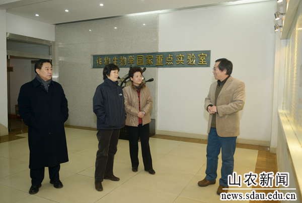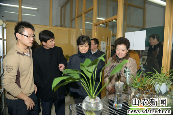 座谈会结束后,左敏一行在邢善萍、温孚江陪同下,参观土肥资源高效利用国家工程实验室、国家苹果工程技术研究中心、机电学院国家级教学实验中心和作物生物学国家重点实验室,并与“泰山学者”李刚、王勇等亲切交流。