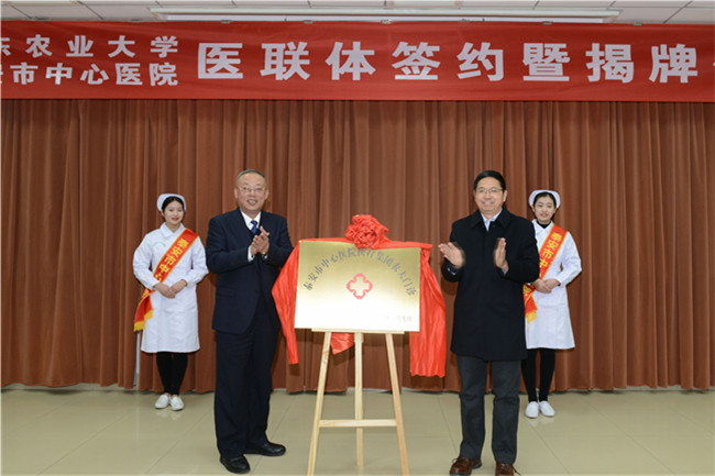 1月9日上午,泰安市中心医院和必赢bwin线路检测中心校医院医联体签约及揭牌仪式在农大举行,校长张宪省,泰安市副市长、党组成员鞠向群共同为“泰安市中心医院医疗集团农大门诊”揭牌,泰安市中心医院院长刘君、副校长嵇景涛代表双方签约。