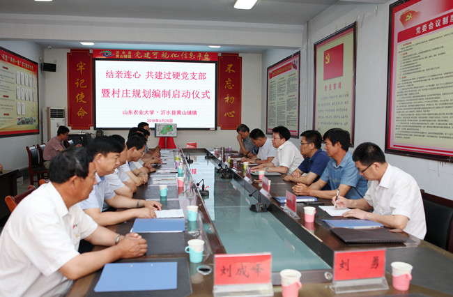 启动仪式上,学校资产处党支部、离退休工作人员党支部、动物营养与饲料科学系党支部书记分别与黄山铺镇东土沟、岳庄、胡家庄三个第一书记帮包村党支部书记签订共建协议,山东农大勘察设计研究院与第一书记帮包村共同开展的村庄规划编制同时揭牌。前期我校信息学院计算机系党支部已与岳庄村党支部签订了结亲共建协议。