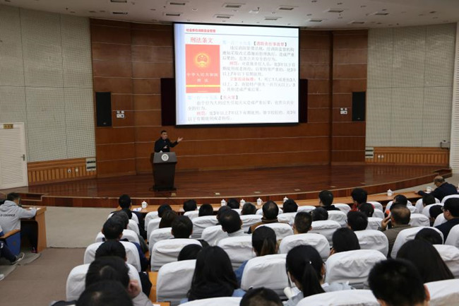 讲座中,杨教官以东北某地万达广场售楼处火灾、某高校学生宿舍火灾等典型火灾事故视频为案例,围绕着消防安全“一懂三会”(懂火灾危险性,会报警、会组织扑救初起火灾、会组织疏散逃生),为大家讲解了消防安全责任制、火灾防范、初起火灾处置、疏散逃生技能等消防常识,给师生上了一堂生动的消防知识课。