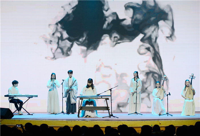 21日晚的艺术学院录音艺术专业学生MIDI原创作品音乐会,将艺术周活动推向高潮。音画节目《谷雨时来》、歌曲《岱道庵》,借用古典诗词及传统故事,刮来带有传统文化风味的“中国风”。《清明祭》在音乐编曲上运用古琴、笛子、箫、琵琶等古典乐器,营造的古雅意境和细腻舞台展现出浓厚的东方传统韵味。音画节目《青提子》、舞蹈《柚子糖》在表演上融合时尚元素,用新理念、新技术、新媒介展现出新的艺术表现形态。视频配乐《AtDuck》、视频声音设计《限制可以改变欲望》,充分展现出学生扎实的专业功底。