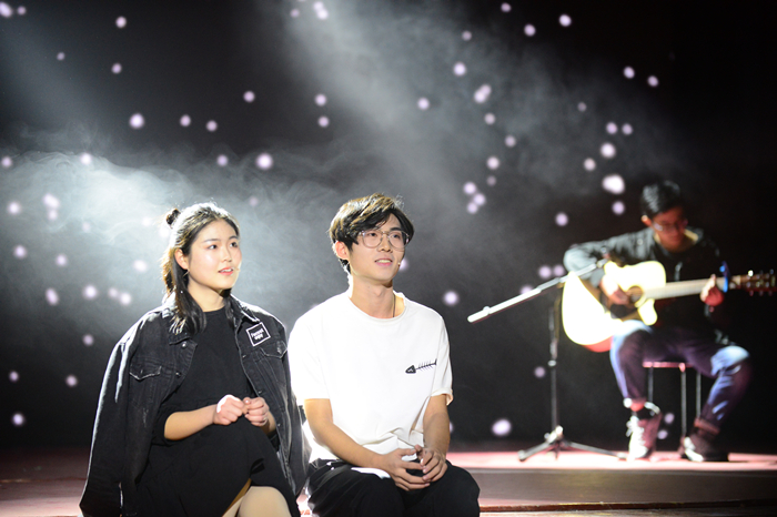 晚上的金秋音乐会是学院推出的重头戏。小提琴、钢琴和二胡独奏,民乐合奏,独唱、二重唱、大合唱,舞蹈等节目形式应有尽有,登台演员都是学校历次大型演出的台柱子,专业水准演出的感染力让师生们深深沉醉。《韵》《华》《实》三个章节步步递进,搭建起音乐的殿堂。婉转悠扬、安静旷达,铿锵有力、豪迈奔放,各种艺术风格错落交织,浑然天成。学院舞蹈队轻盈流畅的基本功展示和自己创演的舞蹈《忆•青衣》更是引起场内青年学生阵阵欢呼。