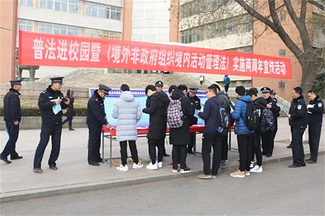 活动期间,警官们向广大师生及学校有关部门发放了《境外非政府组织境内活动管理法》宣传手册及“境外非政府组织管理工作明白纸”。广大师生表示,此次普法宣传活动很必要很及时,通过宣传活动,对境外非政府组织境内活动管理有了更全面深入的了解,进一步提高了法制意识和国家安全意识。