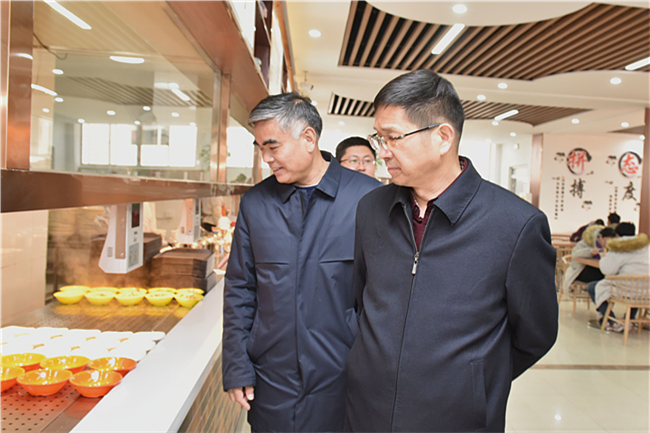 徐剑波和张宪省还视察了南校区新近改造装修的教职工餐厅,在多个窗口了解伙食质量、就餐人数等具体问题,叮嘱工作人员确保用餐卫生和饭菜质量,提高服务水平。
