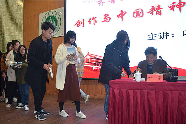 来校期间,叶辛教授向学校捐赠了自己多年来的心血作品,其捐赠的藏书现已收录至学校图书馆。报告会后,叶老还为青年学生签名留念。
