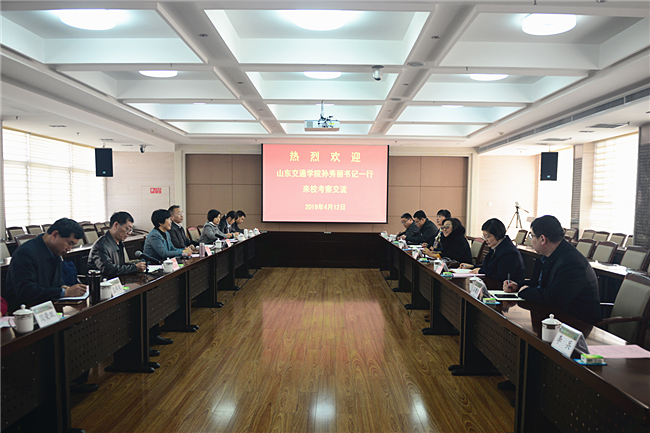 4月12日,山东交通学院党委书记孙秀丽、党委副书记唐勇一行来校考察调研。校长张宪省会见客人,围绕推进文明校园建设、拓展校际合作等开展深入交流。党委副书记朱莉出席座谈会。