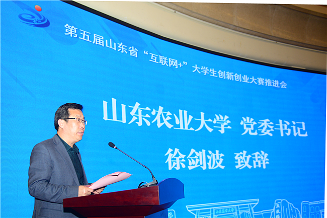 徐剑波在开幕式上致辞,向与会人员介绍了学校办学发展,特别是全面推进大学生创新创业工作的情况。徐剑波说,党的十八以来,山东农大主动对接“大众创业、万众创新”的时代要求,突出实践育人特色,逐步建立起了学校为主导、学院为主体、学生为主角的工作运行体制,打造了学校培育、基地孵化、社会扶持“三位一体”工作体系,探索完善了以专业驱动、项目驱动、平台驱动、赛事驱动为主要内容的“双创四驱”工作模式,涌现出了全国就业创业优秀个人、中国“互联网+”大学生创新创业大赛金奖等一批优秀学生和优质项目,获得了全国创新创业典型经验高校、全国高校实践育人创新创业实践基地等荣誉称号。他表示,学校将以“互联网+”大学生创新创业大赛为平台,进一步推动创新创业融入“双一流”建设和人才培养全过程,让创新创业成为教师教学、学生求学的思想自觉与行动自觉。