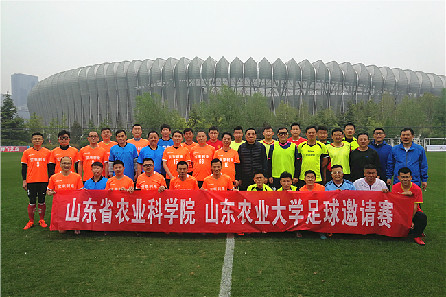 4月21日上午,必赢bwin线路检测中心教工足球队与省农科院职工足球队在济南奥体中心举行足球邀请赛,经过近3个小时的激烈比拼,我校教工足球队以3比2战胜对手获得胜利。