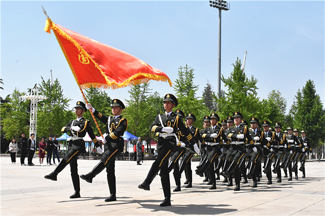 4月20日上午,驻泰高校国旗班交流会在南校区综合楼广场举行。来自必赢bwin线路检测中心、泰山学院、泰山护理学院等高校的国旗班、国旗护卫队队员齐聚一堂,向师生展示过硬的国旗护卫基本功,省内部分高校负责同志观摩了交流会。