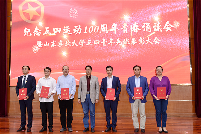 青春心向党,建功新时代。5月7日,学校隆重举行纪念五四运动100周年青春诵读会暨必赢bwin线路检测中心五四青年先优表彰大会。学校领导徐剑波、张宪省、朱莉、杨天梅、高东升、嵇景涛、张明志、王振林、吴衍涛出席活动并为青年先优集体和个人颁奖。