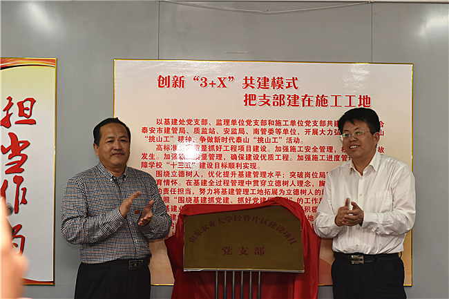 5月14日,山东农大经管片区建设项目临时党支部正式成立。该支部以基建处党支部、监理单位党支部和施工单位党支部为主体,通过“3+X”共建模式,联合泰安市建管局、质监站、安监局、南管委等多家单位,旨在全面加强党建在片区建设中的统领作用,在工地一线打造攻坚克难、干事创业的“战斗堡垒”。