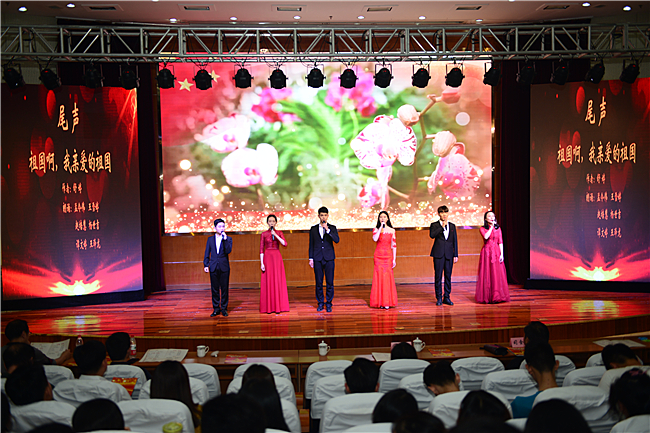 舞台上,三块LED大屏相映成辉,诗会主题“我和我的祖国”璀璨醒目,充分展现了农大师生热爱祖国的精神品质,洋溢出庆祝新中国成立70周年的喜悦和振奋。
