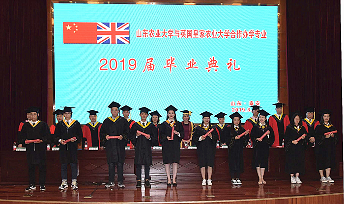 6月14日,中英合作办学专业2019届本科生毕业典礼在文理大楼报告厅举行,食品质量与安全和土地资源管理两个专业220名学生顺利毕业。副校长张然,英国皇家农业大学副校长露茜·梅瑞狄斯博士等双方领导和教师代表出席毕业典礼,为毕业生颁发证书,为优秀毕业生奖学金获得者颁奖。