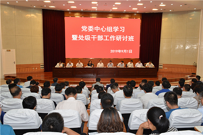9月1日,学校举办党委中心组学习暨处级干部工作研讨班。党委书记徐剑波出席会议并讲话,深刻分析学校当前面临的形势与任务、差距与不足,要求进一步解放思想、深化改革,增优势、凸特色,补短板、强弱项,牢牢把握冲击国家一流学科工作主线,带动学校整体实力全面提升。校长张宪省传达学习暑期全省高校书记校长读书班会议精神和全省高校党的建设工作会议精神,简要总结学校上半年工作,对下半年重点工作进行安排部署。