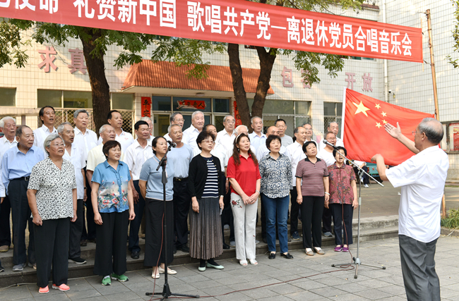 “不忘初心、牢记使命”主题教育开展以来,离退休干部党委创新离退休党员教育形式,把主题教育与庆祝新中国成立70周年各项工作紧密结合起来,激发入党初心,牢记入党使命,引导老党员融入新时代中国特色社会主义建设的伟大征程,为学校高质量发展不断增添正能量。9月26日,“礼赞新中国、歌唱共产党”离退休党员合唱音乐会在夕阳红广场举行,党委副书记朱莉出席活动,与大家欢聚一堂,共同庆祝祖国母亲的生日。