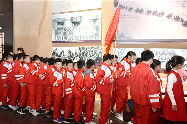 为纪念中国少年先锋队建队70周年,关工委委员和附属学校师生110余人齐聚在陆房突围胜利纪念馆前,面对鲜红的五星红旗,党员们重温了入党誓词,附属学校少先队员进行了庄严宣誓。