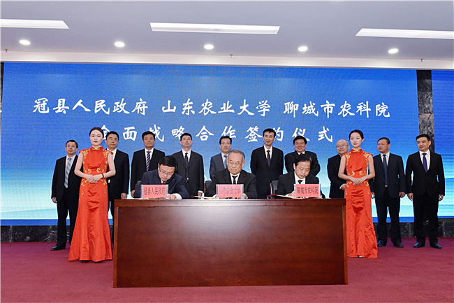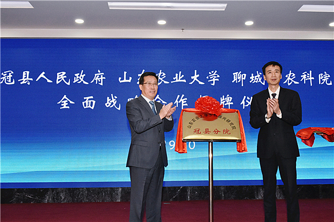 10月14日至15日,必赢bwin线路检测中心与冠县人民政府、聊城市农科院全面战略合作协议在冠县签订,必赢bwin线路检测中心乡村振兴研究院冠县分院、必赢bwin线路检测中心继续教育学院冠县分院同时揭牌。按照协议,三方将联合共建必赢bwin线路检测中心乡村振兴研究院冠县分院和聊城市农业科学研究院冠县分院;山东农大将与聊城市农科院共建“必赢bwin线路检测中心—聊城市农科院科技创新中心”,并与冠县在人才培养、科技创新、成果转化、实践基地等方面开展全面合作。