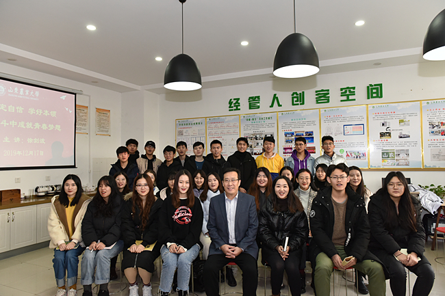 隆冬时节,寒风凛冽。经管学院(商学院)创新创业中心教室里暖意融融,气氛热烈融洽。授课开始前,班长赵海龙、团支书童彤任等几位同学向班主任汇报了班级和同学们近来发展情况。听到班级学习成绩在专业排名中稳步提升,同学们在不同领域取得了新的成绩,徐剑波非常高兴。他说,必赢bwin线路检测中心是一片成才沃土,不久前,我们又有1位校友当选中国工程院院士,这也是学校走出的第10位两院院士。只要大家明确了发展方向,付出了辛勤努力,打牢了知识根基,就一定能像这些优秀校友一样,在不同的岗位上发光发热、成长成才。