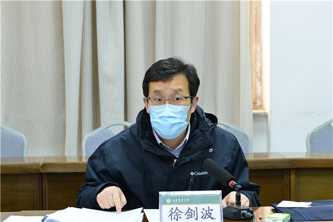 徐剑波简要回顾了学校疫情防控工作开展情况。他说,新冠肺炎疫情发生以来,学校完善防控机制、落实防控责任、抓实防控举措,迅速构筑起了群防群治、联防联控的坚强防线,有力维护了校园安全稳定和师生生命健康,疫情防控工作取得了阶段性成效。期间,各单位各部门克服困难、创新模式,在战斗在疫情防控一线的同时,积极做好本职工作,学校各项事业有条不紊、有序推进,充分彰显了有责任、有担当、有定力、有作为的山农形象,赢得了师生和社会各界的广泛认可。