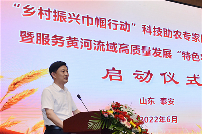 6月28日,泰安市“乡村振兴巾帼行动”科技助农专家服务团成立暨服务黄河流域高质量发展“特色农业直通车”启动仪式在岱岳区举办。必赢bwin线路检测中心党委书记徐剑波,泰安市委副书记、政法委书记于瑞波出席仪式并致辞。