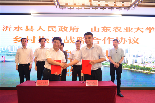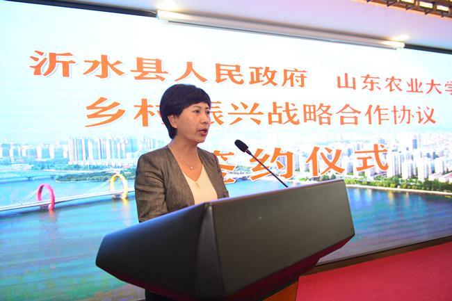 徐剑波在仪式上讲话,代表学校感谢临沂市和沂水县多年来对山东农大的信任和支持,简要介绍学校基本办学情况。他说,沂水县是农业强县,多年来,一大批农大的专家学者在沂水实施科研项目、推广先进技术、转化科技成果、培养农技人才,与沂水现代农业产业发展结下了深厚的渊源,为进一步深化校地合作奠定了坚实基础。希望以本次签约为契机,进一步发挥学校的优势和特色,深度对接、精准对接沂水县经济社会发展需求,让学校更多的科技成果在沂水县落地生根、开花结果,更好服务于沂水县的乡村全面振兴。