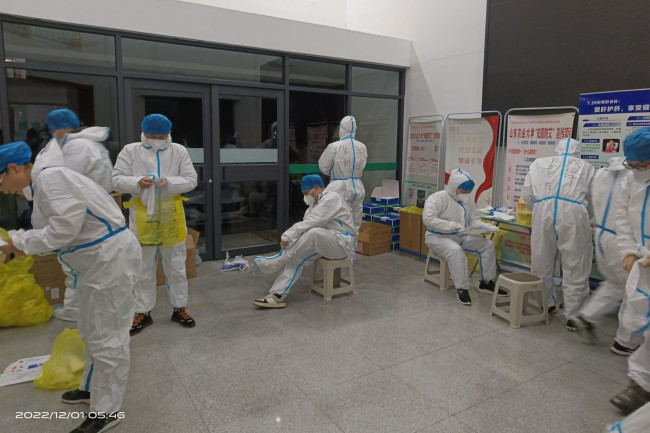 还有医务人员的孩子是毕业班,无法陪伴孩子上网课;有的同志因为封在学校,把仍在哺乳期的孩子交给了父母;有的怀孕的同志,克服妊娠反应,留守岗位;有的同志身患高血压、腰椎间盘脱出、膝关节退行性病变等慢性疾病,但仍在坚守岗位,参加核酸采集等工作。