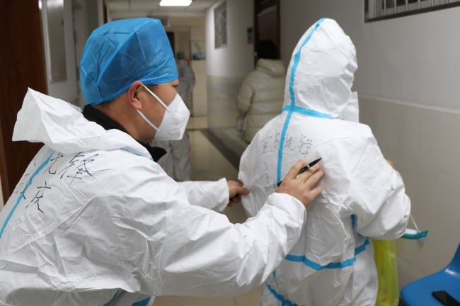 当我带着简单的行李离开家时,我落泪了,一边是老人和孩子,一边是需要我的工作岗位。但是我没有胆怯,是坚强的意志充斥着我的头脑:身为医者,治病救人责无旁贷;身为战士,我们理应站在最前沿!脸上挂着深深的口罩印、面屏下的琉璃冰、冻得没有知觉的手指在我身上都不值一提,因为我是共产党员,是这颗火热的红心激励着我。黑夜过后就是黎明,分离之后就是团圆,我们所有医务人员相互协作,彼此激励,攻克难关,我坚信一定会逾越病毒,春天一定会到来!——程平
