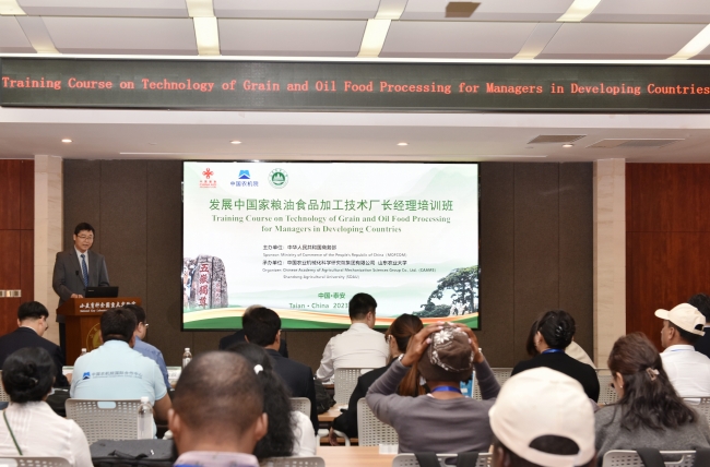 5月25日至31日,发展中国家粮油食品加工技术厂长经理培训班在我校举办,来自巴巴多斯、加纳、尼泊尔、蒙古、巴基斯坦和斯里兰卡的23名农业专员参加培训。必赢bwin线路检测中心党委常委、副校长王勇,中国农业机械化科学研究院集团有限公司国际合作中心主任马腾出席开班仪式并致辞。
