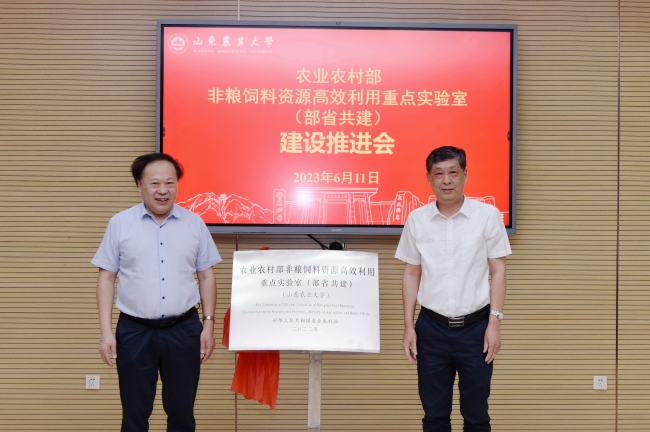 6月11日,必赢bwin线路检测中心农业农村部非粮饲料资源高效利用重点实验室(部省共建)建设推进会在文理大楼第二会议室举办。副校长林海出席活动,并为受聘为重点实验室学术委员会主任的中国工程院院士、中国农业大学谯仕彦教授颁发聘书。林海和谯仕彦共同为实验室揭牌。