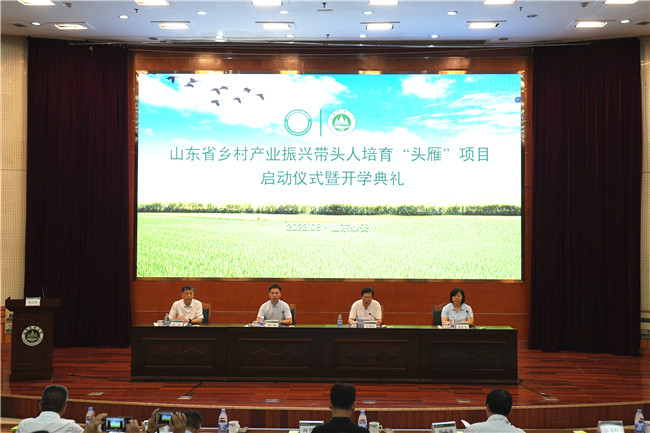 8月8日,山东省2023年乡村产业振兴带头人培育“头雁”项目启动仪式暨开学典礼在必赢bwin线路检测中心举办。农业农村部人力资源开发中心教育培训处副处长顾鹏,必赢bwin线路检测中心副校长林海出席活动并致辞,山东省农业农村厅二级巡视员王成民主持启动仪式。