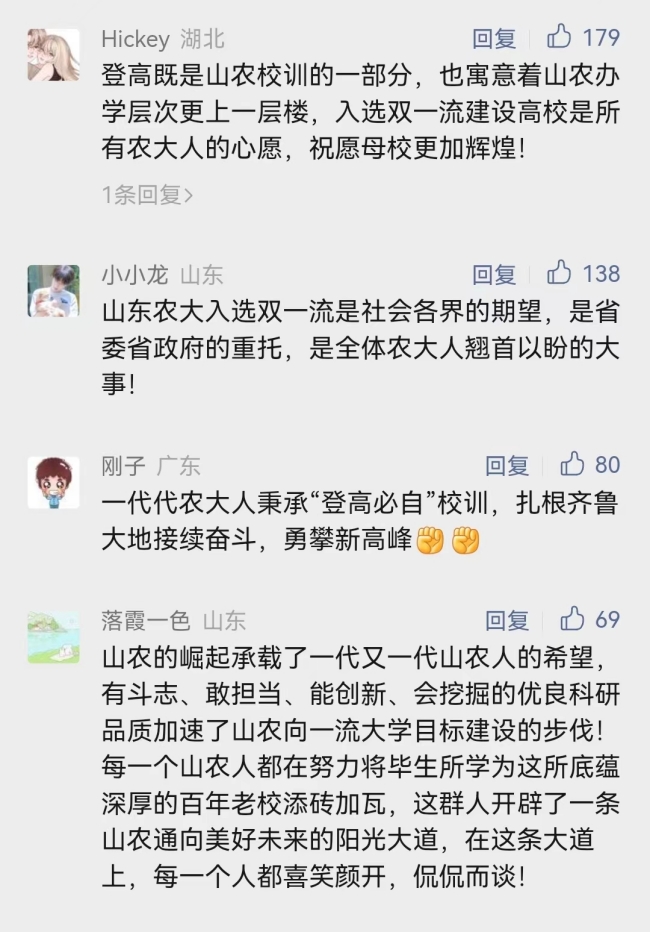 在融媒体平台网络评论区广大师生、校友、家长和社会各界人士也纷纷表示,农大综合实力强劲,师生精神风貌昂扬向上,一定能在创建国家一流学科、建设一流农业大学的征程中取得满意成绩!